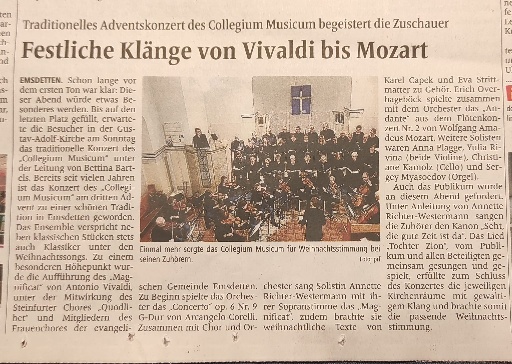 Zwei erfolgreiche und gut besuchte Konzerte liegen hinter uns. Unser Dank geht an das „Collegium Musicum“, die uns eingeladen hatten, das Adventskonzert mitzugestalten.